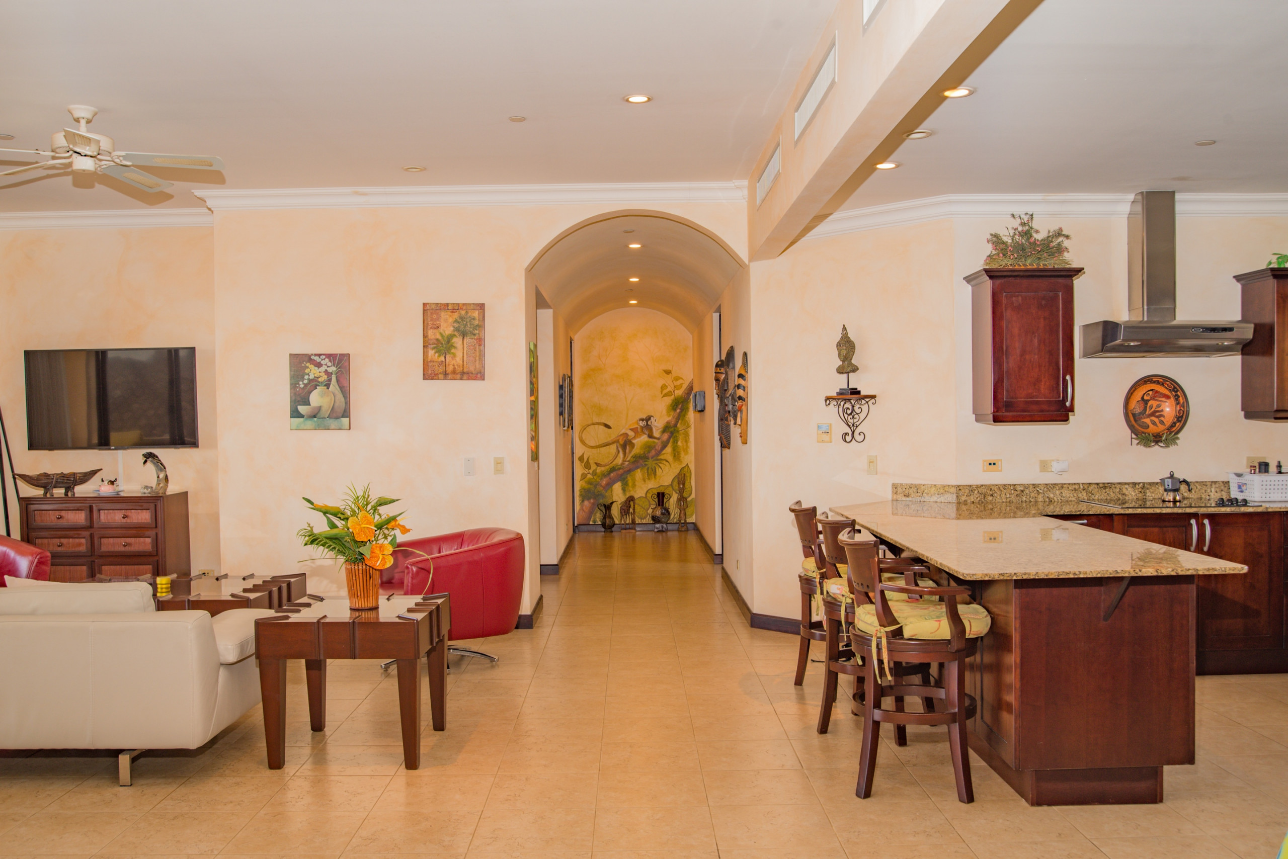 Located on a gated community with security 24/7. You will be able to enjoy all the amenities that Reserva Conchal offers, like its extraordinary beach club with restaurant and swimming pool and direct access to the wonderful Playa Conchal, in a relaxed family atmosphere. There is a shuttle available (complementary) to move inside Reserva Conchal. It`s 10 minute drive or a 20 minute walk to the beach.