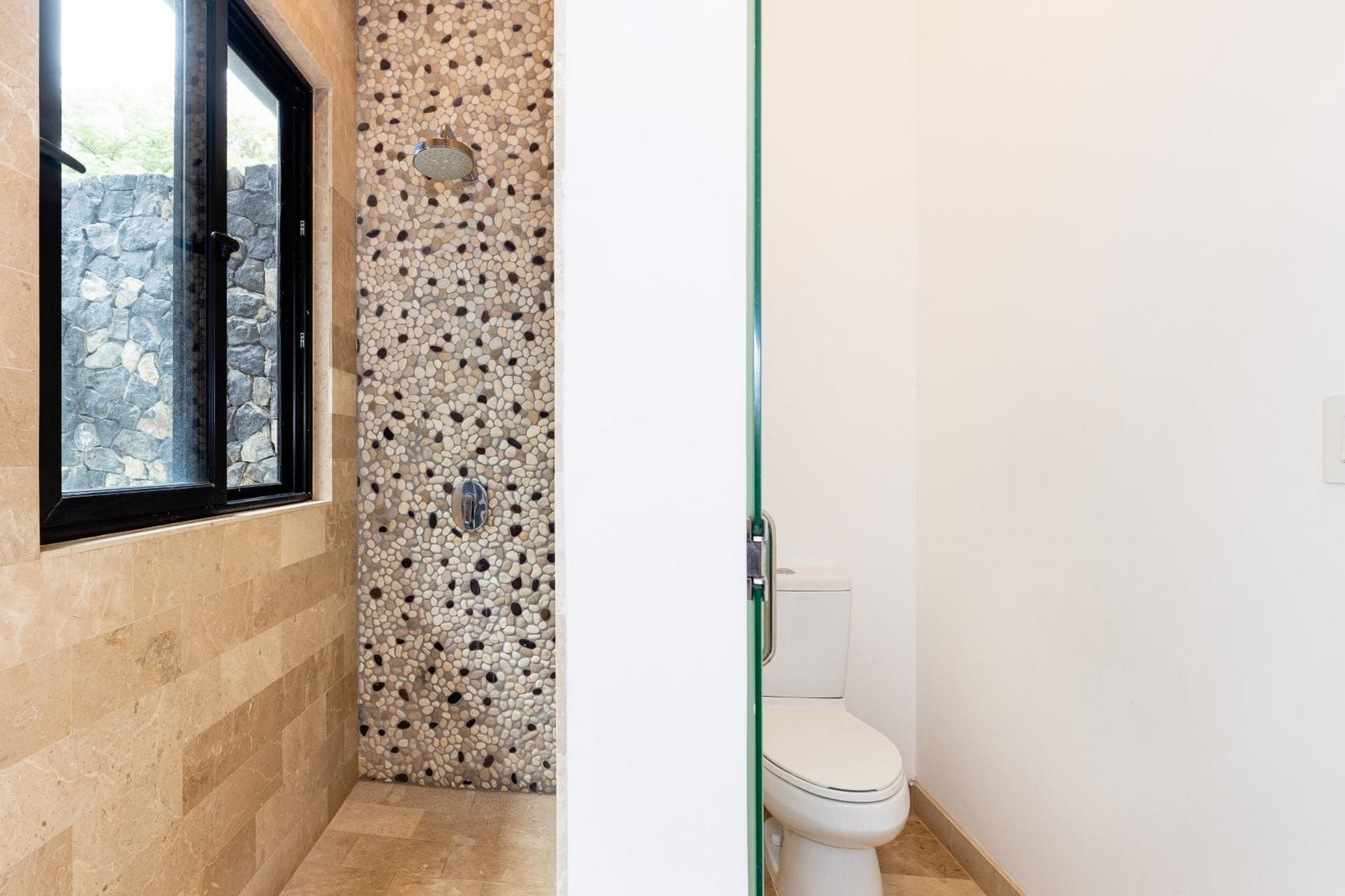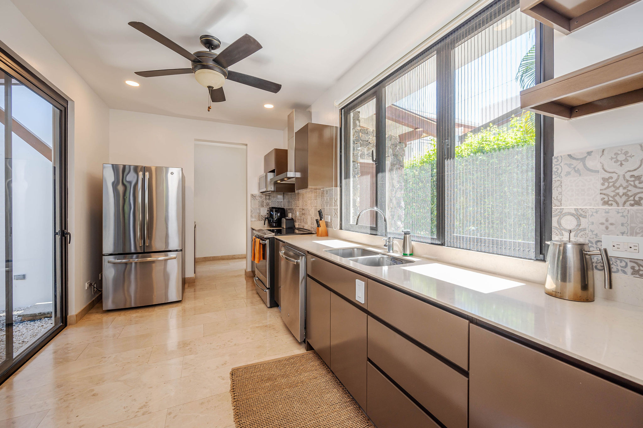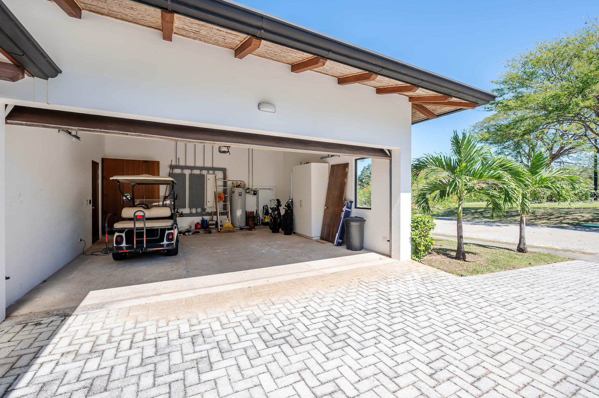From the moment you arrive, an interior zen garden fills the home with natural light and creates a serene, welcoming atmosphere. The social areas—living room, dining area, and modern kitchen—flow seamlessly into the outdoors through glass doors that open onto an elegant terrace.